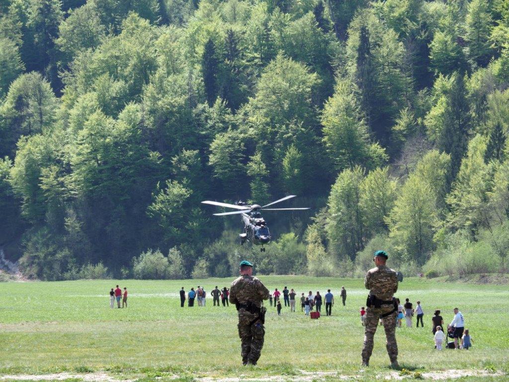 Največ pozornosti je pritegnil vojaški helikopter. Vsi smo se z veseljem podprli z vojaškim pasuljem in dobro joto, za povrhu pa posladkali z jabolčnim in skutinim zavitkom.